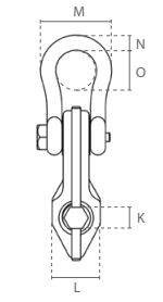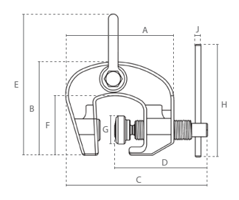 | Kėlimo galia, t | A, mm | B, mm | C min, mm | D, mm | E, mm | F, mm | G, mm | H, mm | I, mm | J, mm | K, mm | L, mm | M, mm | N, mm | O, mm |